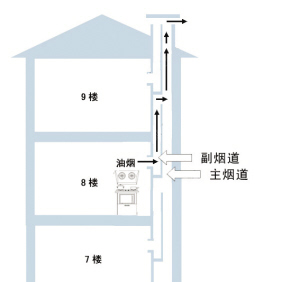 每戶的煙道開口,也就是逆止閥的位置,應該比主煙道上的低,因為煙氣都是往上流動的,所以主煙道的氣味很少會進入支煙道里面,也就不會出現(xiàn)串味的現(xiàn)象了。